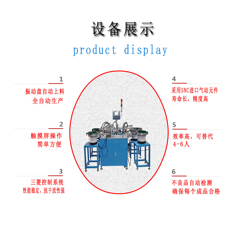 4:人工只需補(bǔ)充物料,設(shè)備自動依次完成各工序組裝,并自動下料
