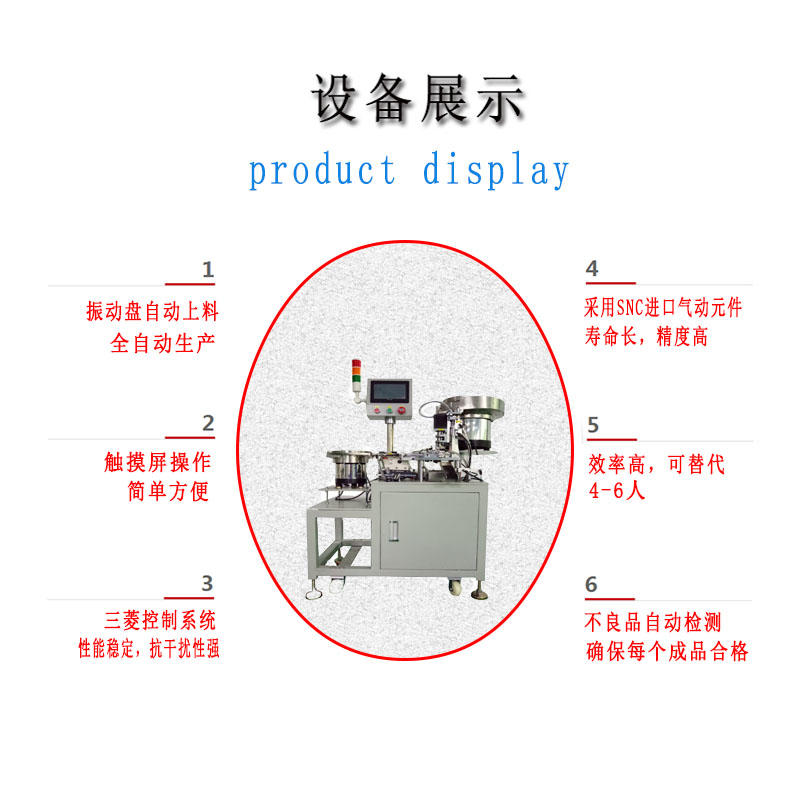 4:人工只需補充物料,設(shè)備自動依次完成各工序組裝,并自動下料