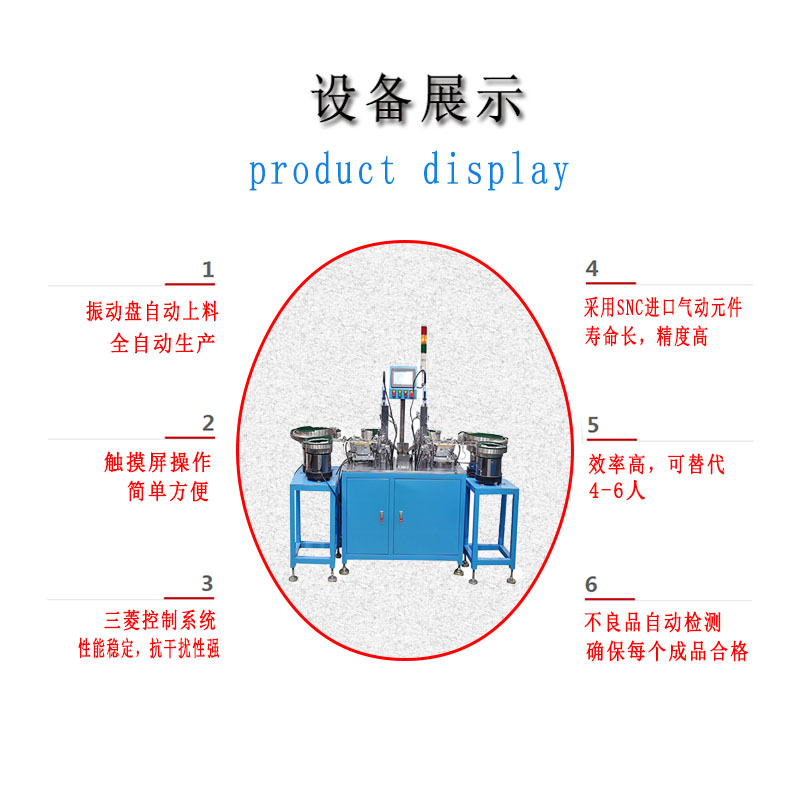 4:人工只需補(bǔ)充物料,設(shè)備自動依次完成各工序組裝,并自動下料